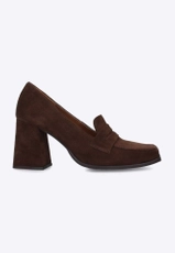 MOKASYNY DAMSKIE ZE SKÓRY ZAMSZOWEJ NA OBCASIE EXQUISITE 1357