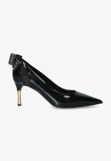CZÓŁENKO DAMSKIE ZE SKÓRY ZAMSZOWEJ Z OZDOBNĄ ZŁOTĄ KOKARDĄ SOFFICE SOGNO I22810