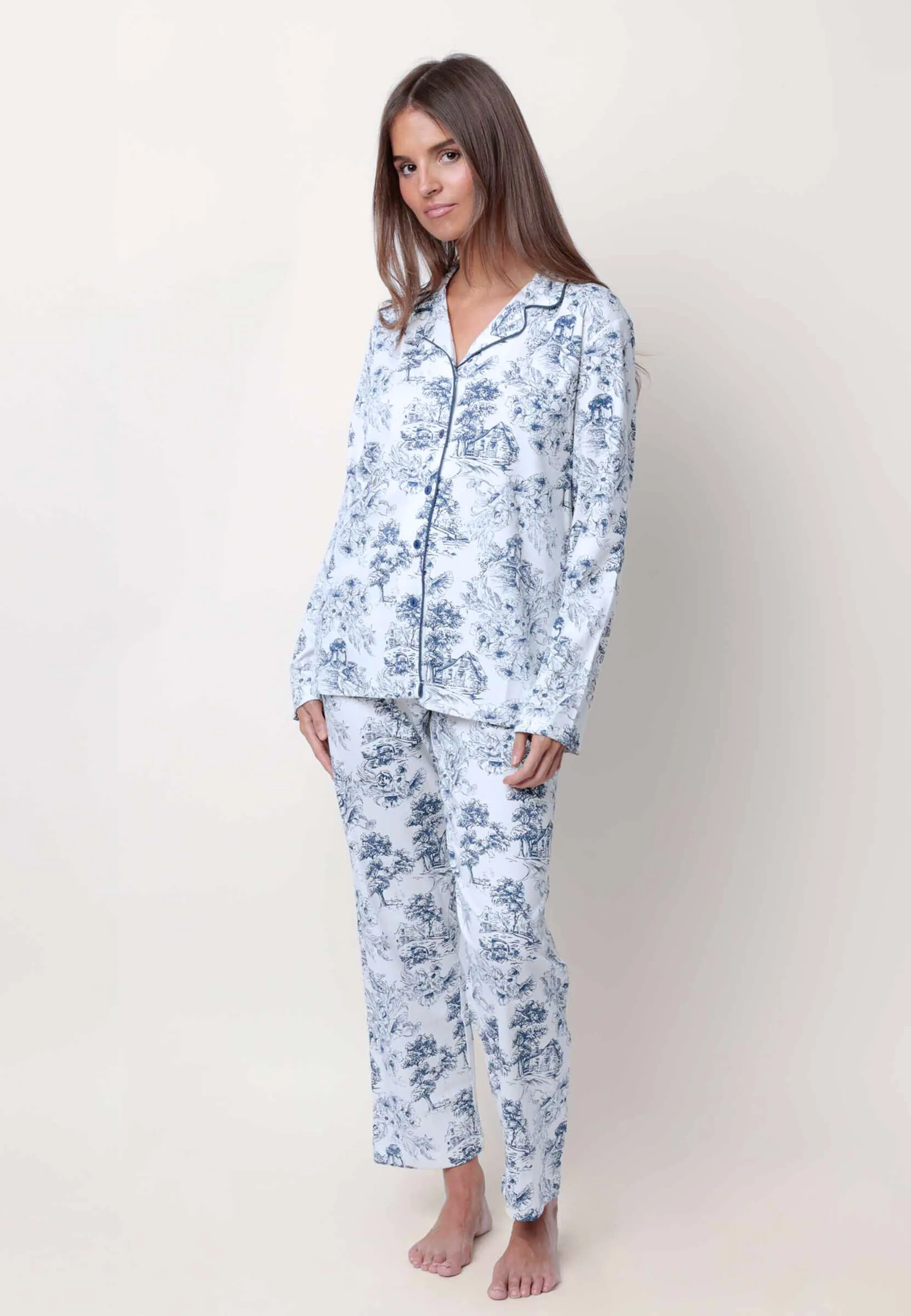 BAWEŁNIANA PIŻAMA DAMSKA ZAPINANA NA GUZIKI Z NADRUKIEM ADMAS 63584