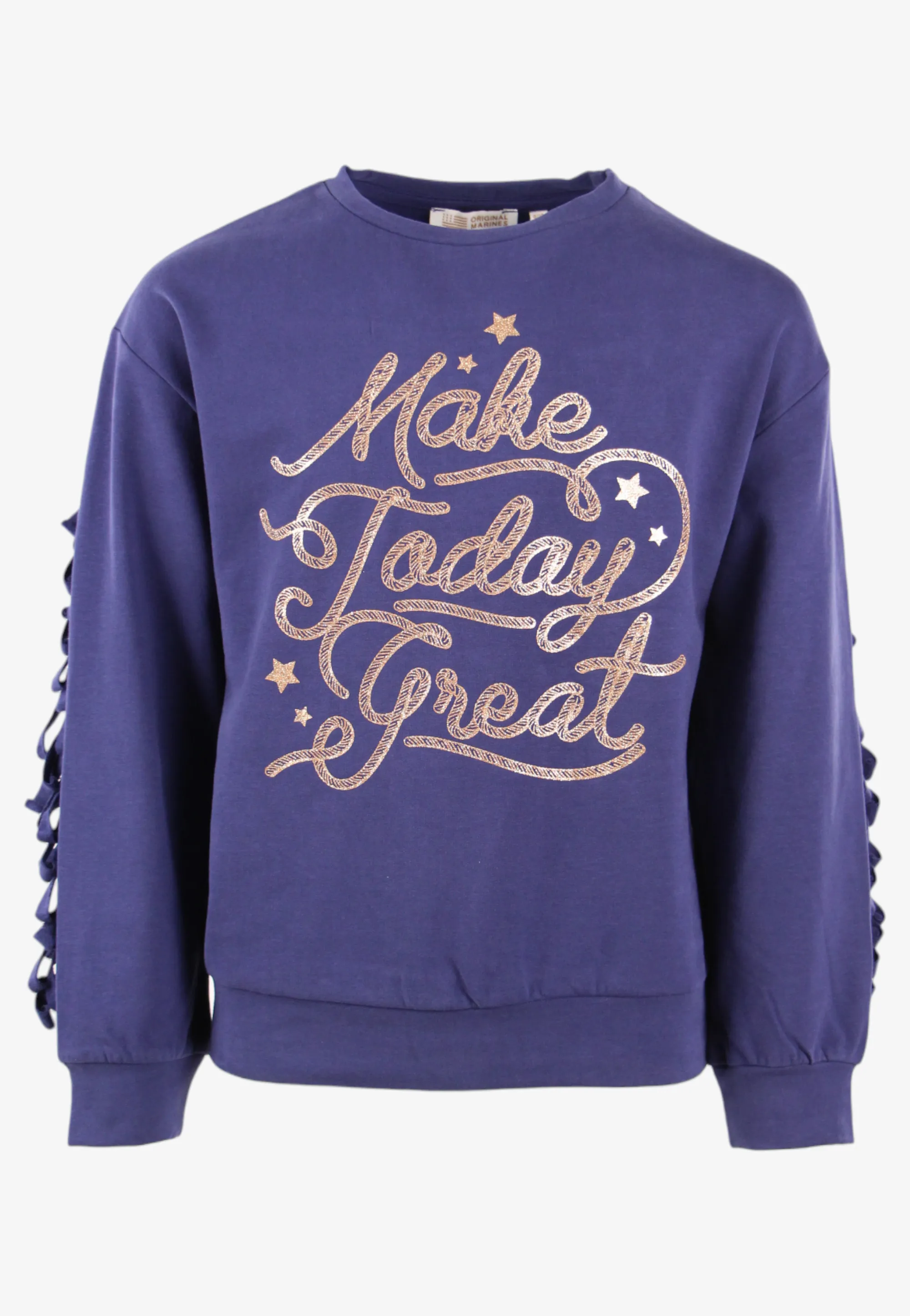BLUZA DZIEWCZĘCA OZDOBIONA ZOŁTYM NADRUKIEM I FRĘDZLAMI ORIGINAL MARINES