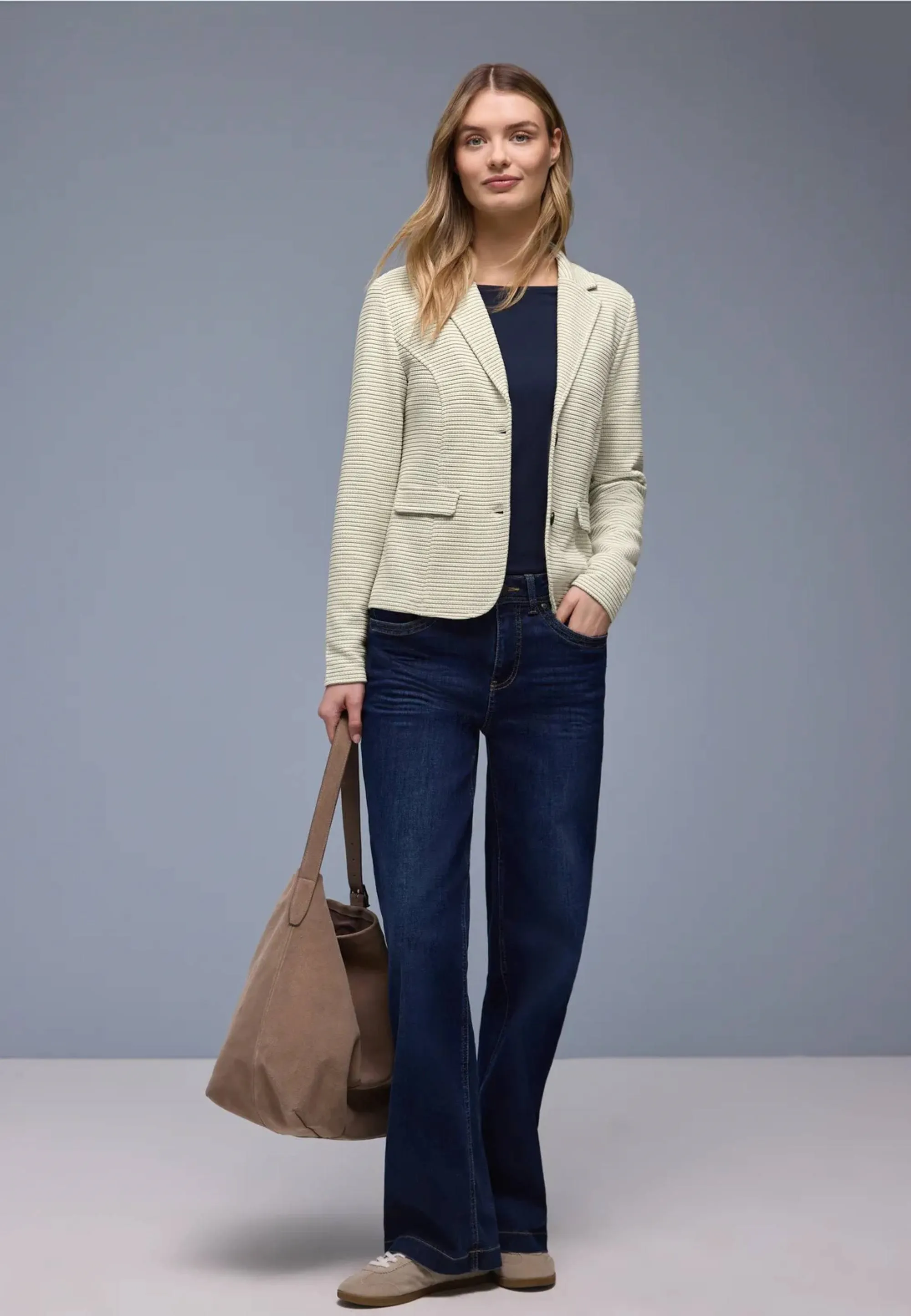 MARYNARKA DAMSKA W PASKI Z FAKTURĄ Z DOMIESZKĄ WISKOZY STREET ONE 1 212965