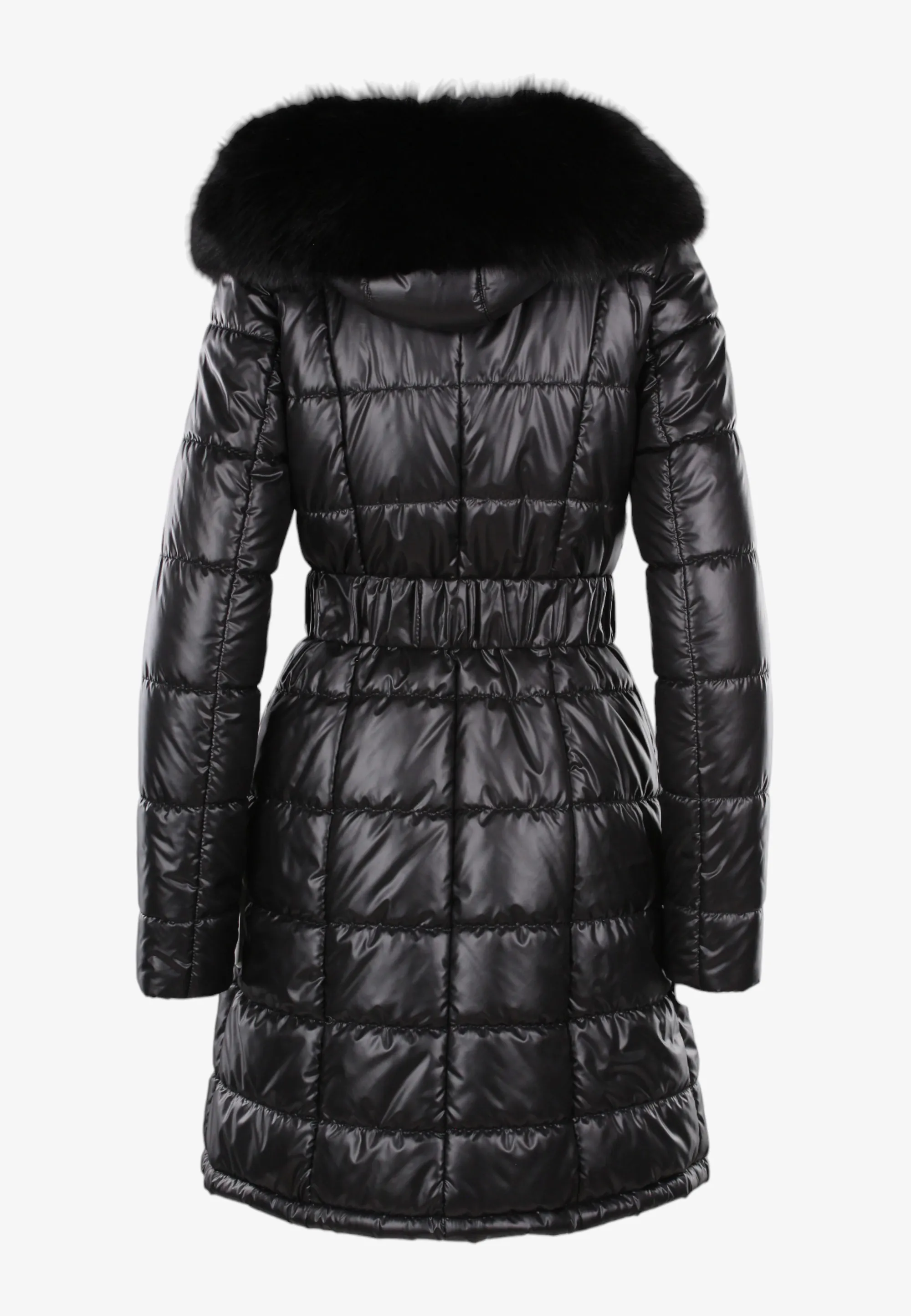 PIKOWANY PŁASZCZ DAMSKI Z FUTRZANYM KOŁNIERZEM I KAPTUREM FAN LEATHER 692