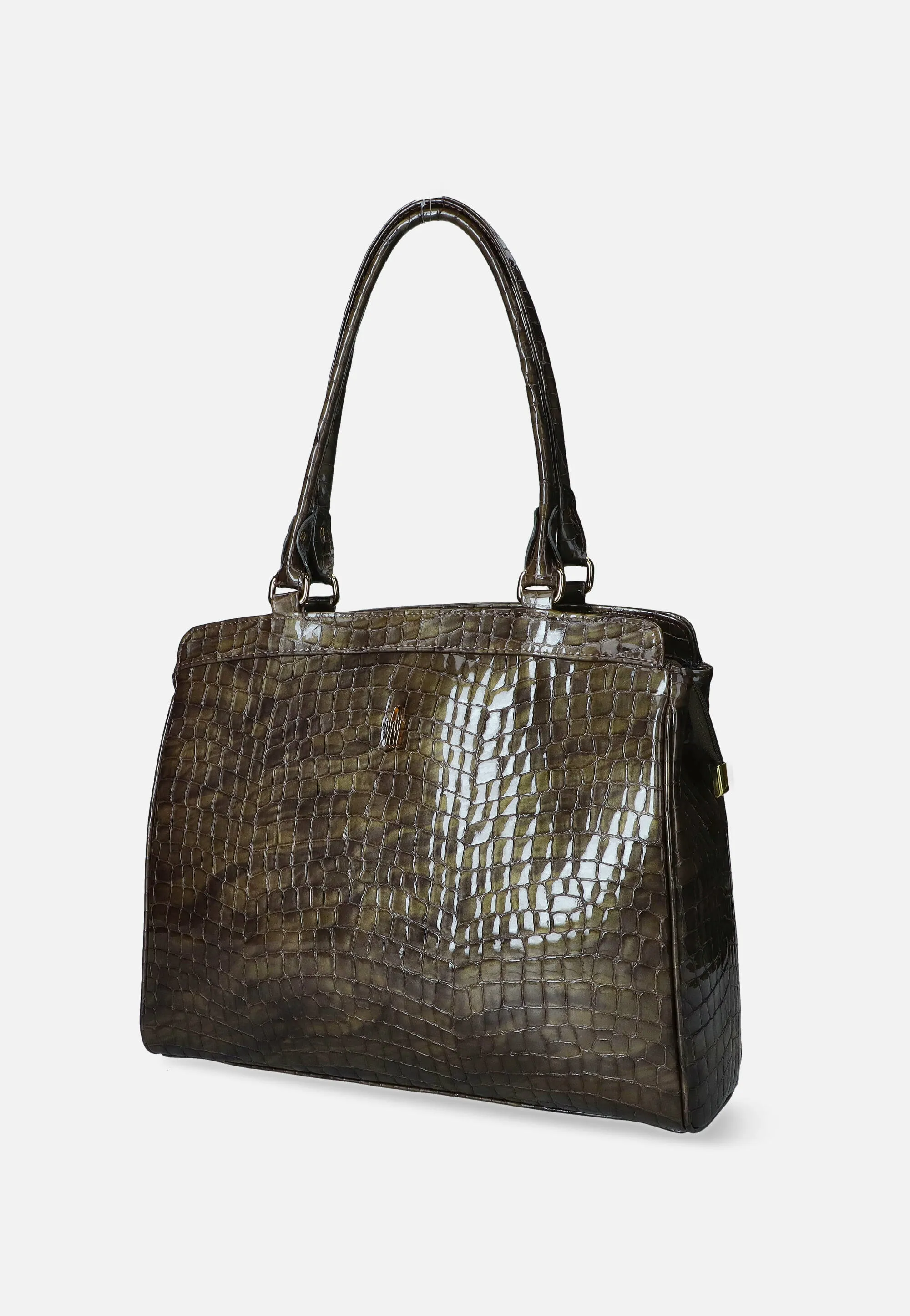 SKÓRZANA LAKIEROWA TOREBKA DAMSKA Z FAKTURĄ KROKODYLA WOJEWODZIC