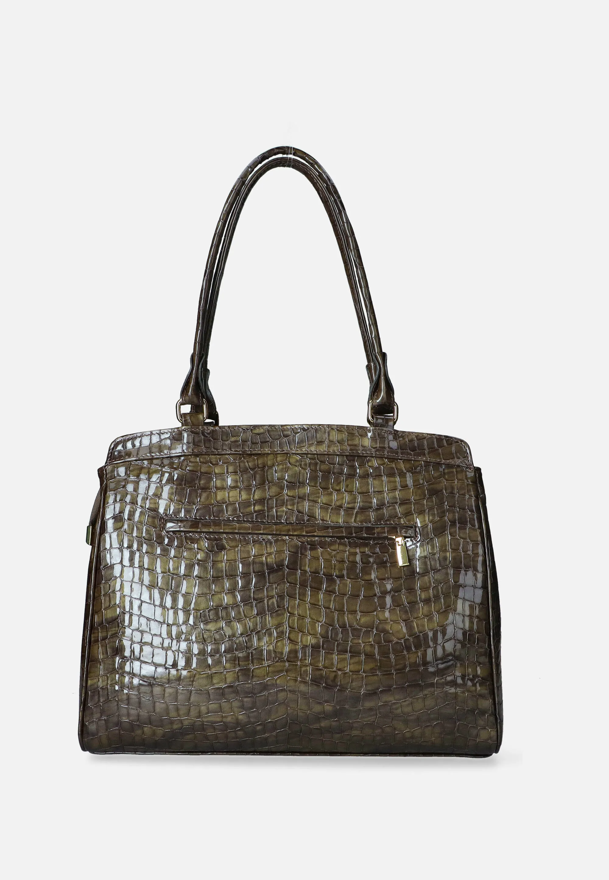 SKÓRZANA LAKIEROWA TOREBKA DAMSKA Z FAKTURĄ KROKODYLA WOJEWODZIC W1948-KFM39-Z