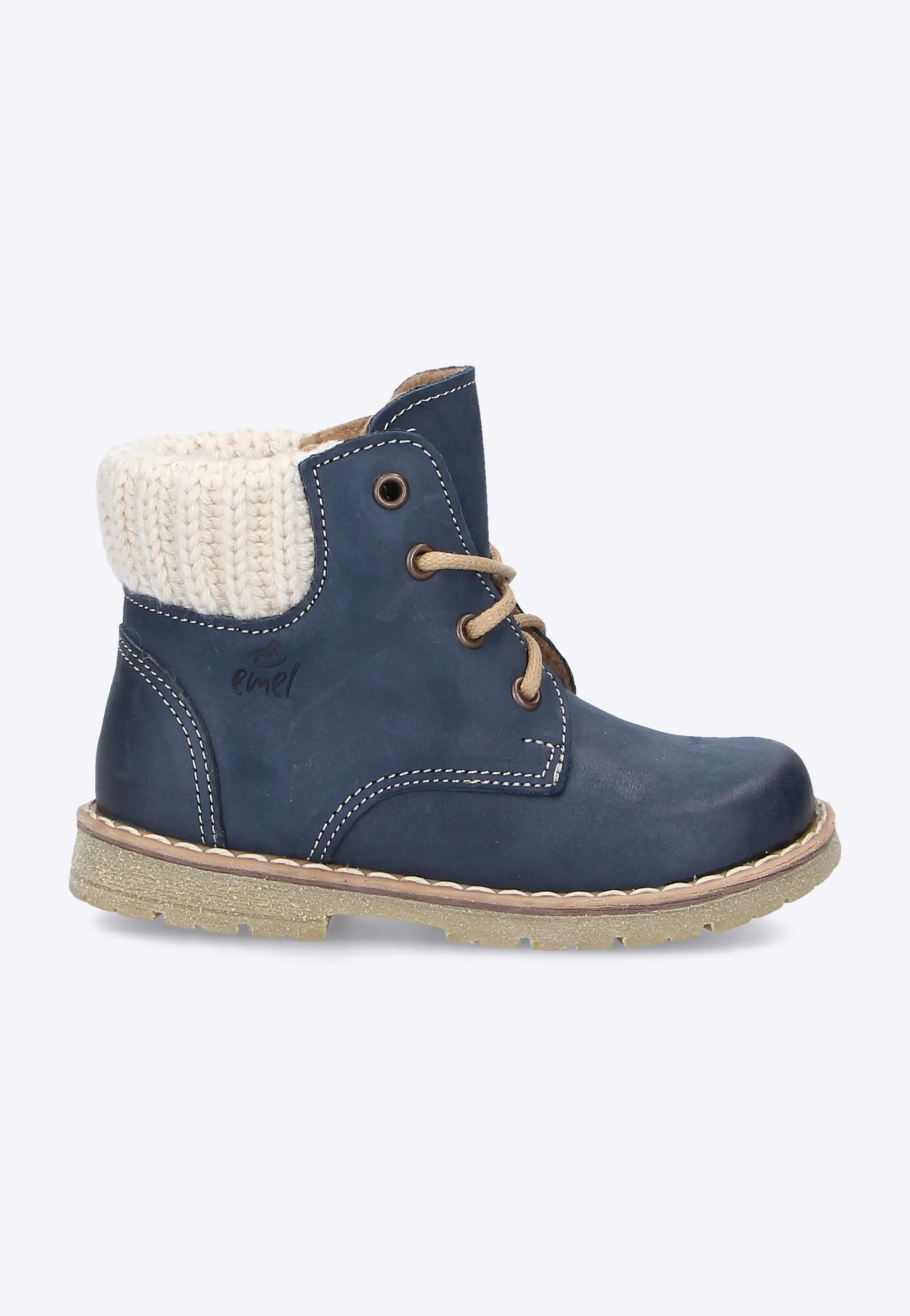Chłopięce, ocieplane trzewiki Emel. Ręcznie wykonane obuwie profilaktyczne, które jest idealnym rozwiązaniem dla dzieci zaczynających naukę chodzenia. Obuwie wykonane z najwyższej jakości materiałów, wygodne dla rozwijającej się stopy.