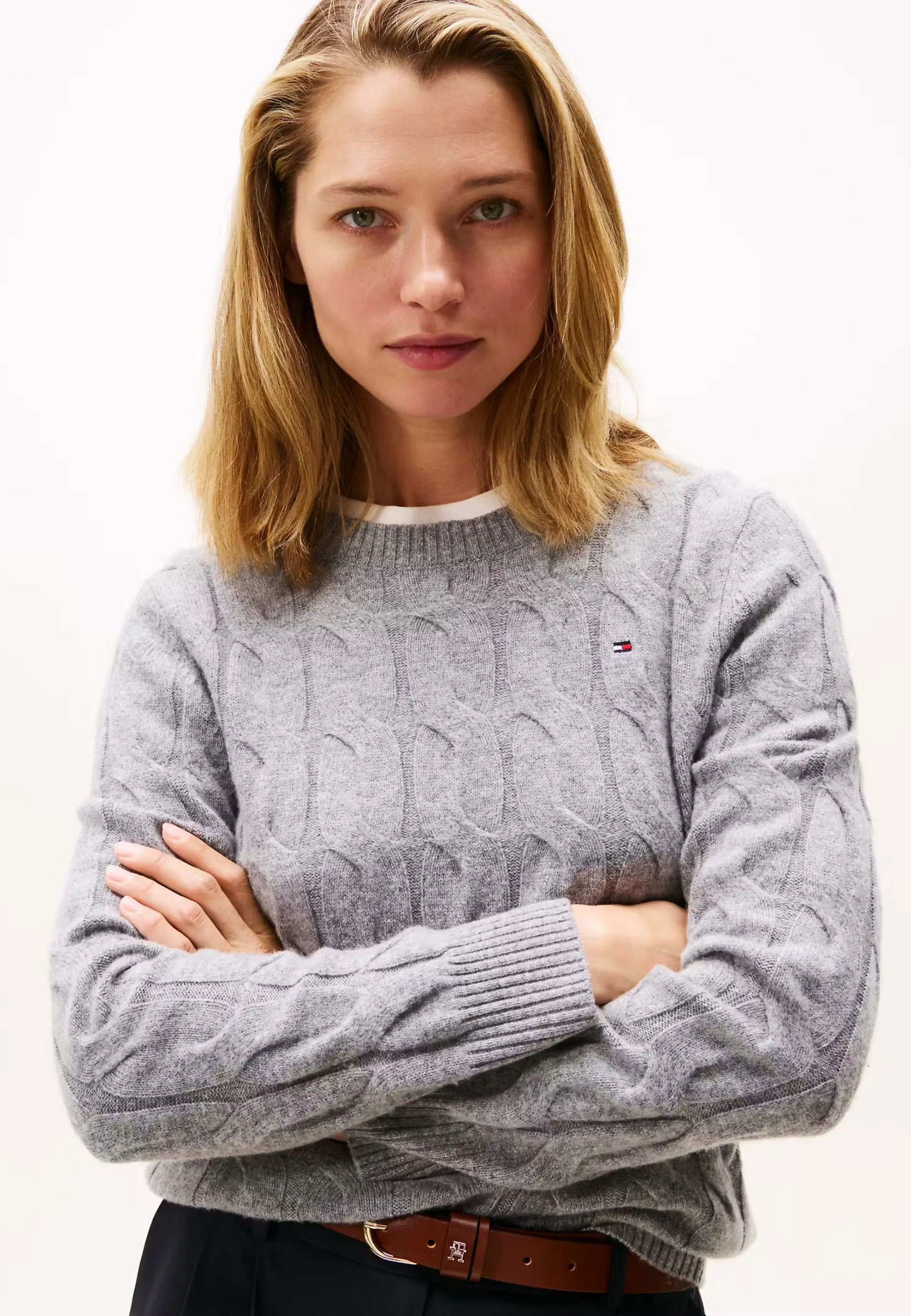 WEŁNIANY SWETER DAMSKI Z WARKOCZOWYM SPLOTEM TOMMY HILFIGER