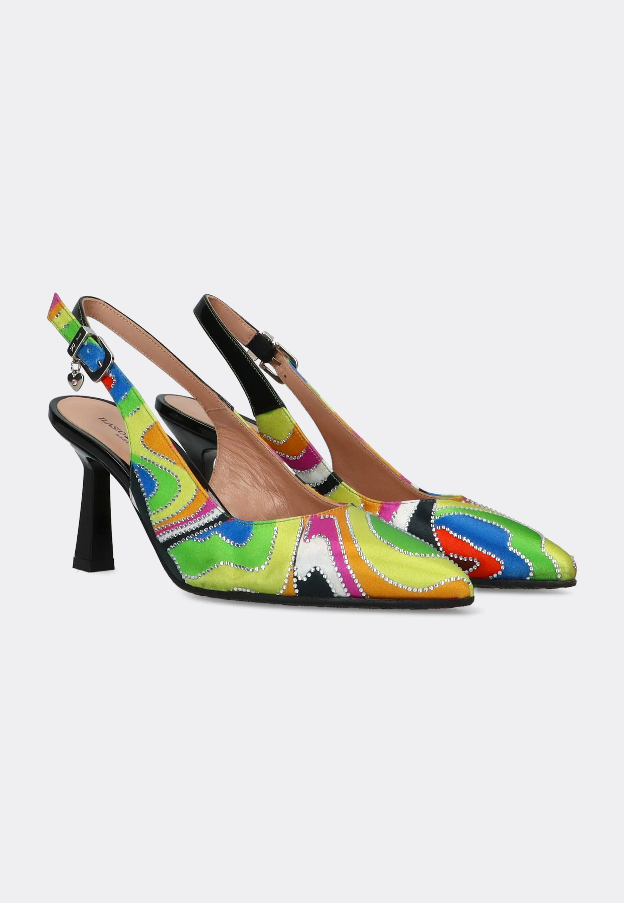 WZORZYSTE SZPILKI DAMSKIE Z ODKRYTĄ PIĘTĄ ILASIO RENZONI